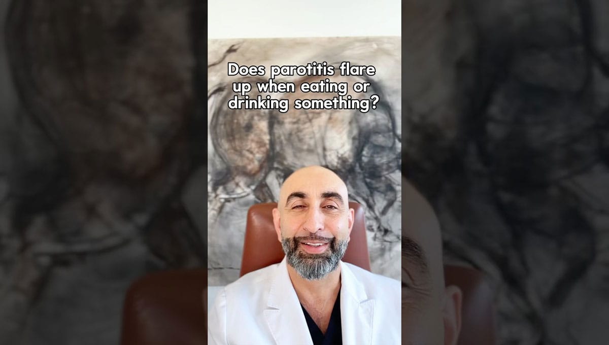 Does parotitis flare up after eating foods or drinking liquids?